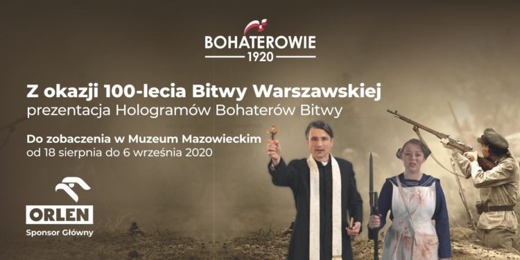 Od 18 sierpnia do 6 września 2020 r. w Muzeum Mazowieckim w Płocku będzie trwać wyjątkowa wystawa poświęcona 100. rocznicy Bitwy Warszawskiej. Dzięki wsparciu sponsora wydarzenia, którym jest PKN ORLEN, obejrzymy projekcję hologramową bohaterskich uczestników tamtych walk o Płock w skali 1:1.