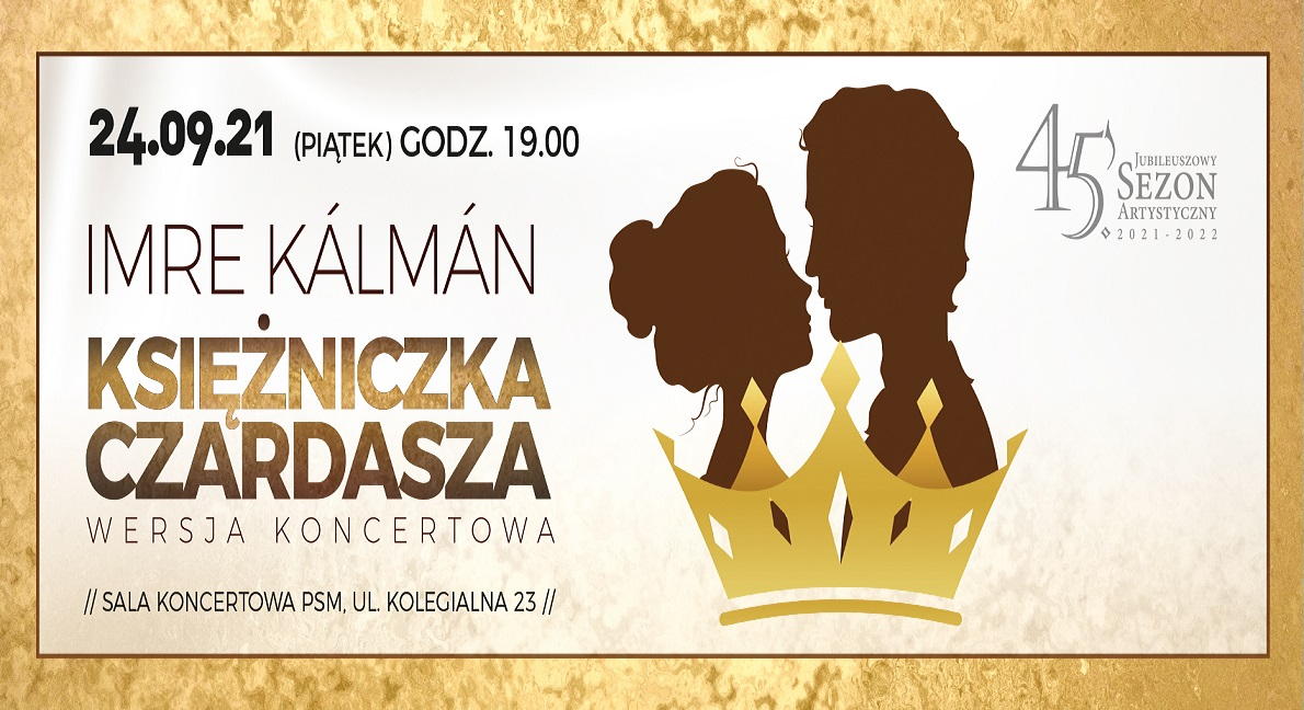 W najbliższy piątek, 24 września o godzinie 19 Płocka Orkiestra Symfoniczna zaprasza do sali koncertowej Państwowej Szkoły Muzycznej na wyjątkowy spektakl w wersji koncertowej „Księżniczka Czardasza”. Jest to jeden z najgorętszych tytułów operetkowych na całym świecie.