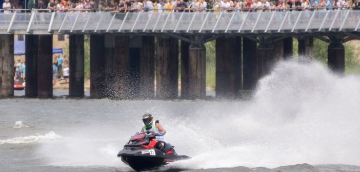 4 czerwca w samo południe ryczące maszyny skuterów wodnych rozgrzewały się przed walką. Rozgrzewało ich również palące słońce, które z czasem zostało przesłonięte czarnymi chmurami. Ani deszcz, ani pomrukiwania burzy nie wystraszyły jednak zawodników. Mistrzostwa Polski Skuterów Wodnych, organizowane przez płocki WOPR, przyciągnęła na molo sporą publiczność. Zawodnicy na przeróżnych rodzajach skuterów prezentowali swoje umiejętności, … Czytaj dalej Deszcz i burza im niestraszna. Trwają Mistrzostwa Polski Skuterów Wodnych