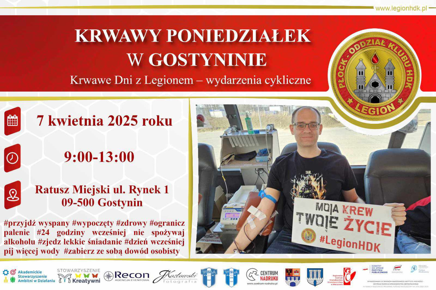 - „Krwawy Poniedziałek w Gostyninie” 07.04, godz. 9.00 – 13.00, Krwiobus przed Ratuszem Miejskim, ul. Rynek 1.