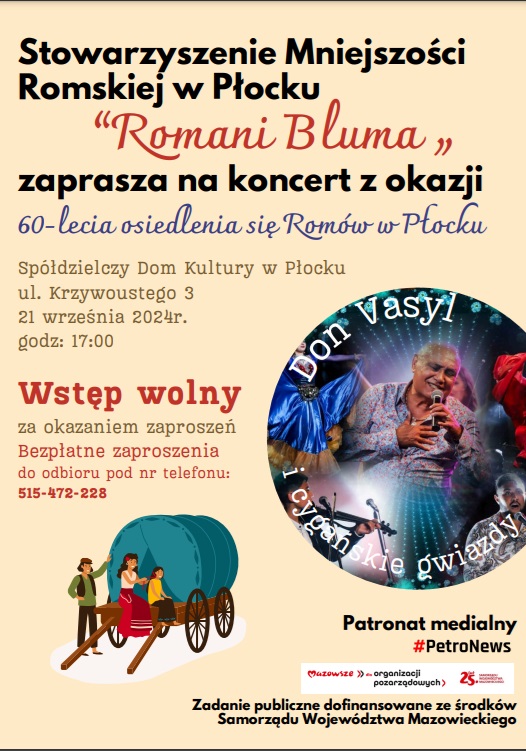 Koncert z okazji 60-lecia osiedlenia się Romów w Płocku już niebawem. W Spółdzielczym Domu Kultury w Płocku wystąpi między innymi Don Vasyl. Organizatorzy chcą podkreślić fakt, że Romowie są integralną częścią Płocka. Na koncert zaprasza Stowarzyszenie Mniejszości Romskiej „Romani Bluma”.