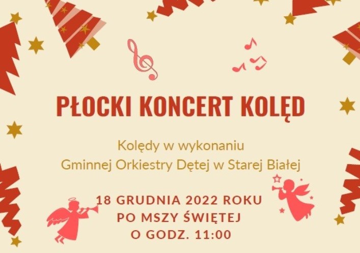Na 18 grudnia br. w Kościele pw. św. Jadwigi Królowej w Płocku zaplanowano Płocki Koncert Kolęd w wykonaniu Gminnej Orkiestry Dętej w Starej Białej. Koncert odbędzie się po mszy św. o godz. 11.