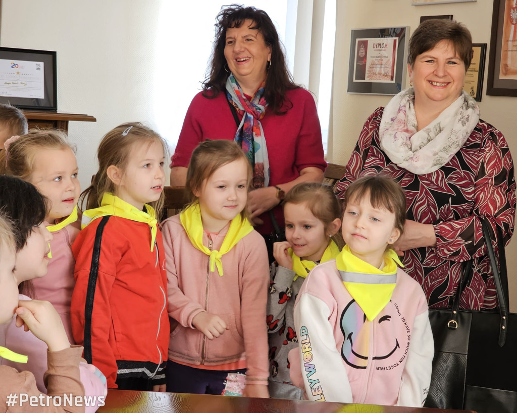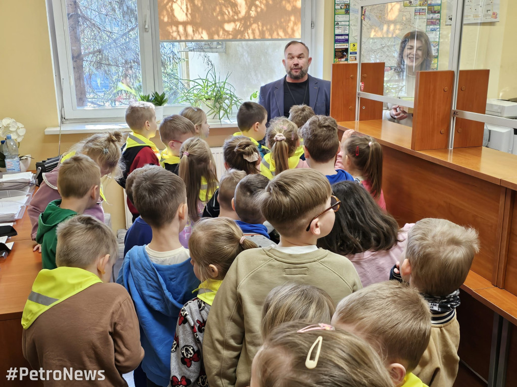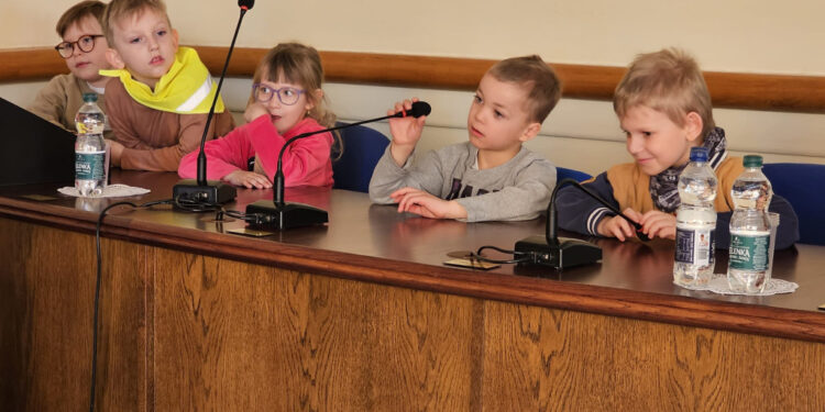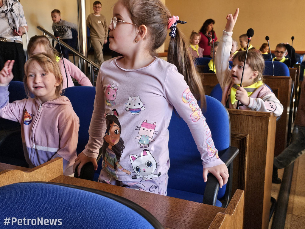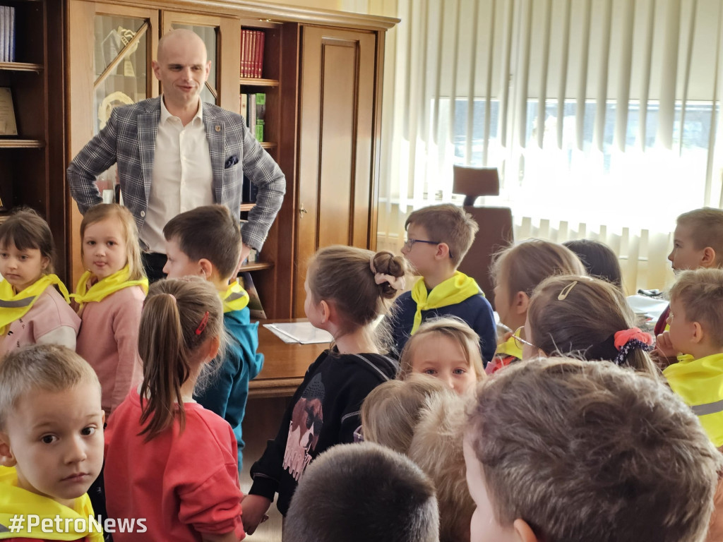 Mali goście zwiedzili gabinety wicestarosty i Sekretarz Powiatu Płockiego, zrobili sobie zdjęcie na tle ściany, gdzie zazwyczaj odbywają się konferencje prasowe, zajrzeli też do gabinetu Przewodniczącego Rady Powiatu. Z okna na pierwszym piętrze podziwiali pasiekę na dachu, gdzie pszczoły już ciężko pracują. Następnie dzieci z paniami zeszły na parter, zatrzymując się przy kancelarii ogólnej, skąd udały się do Wydziału Komunikacji, po którym oprowadził je dyrektor Mariusz Lewicki. Na koniec zobaczyły salę sesyjną, gdzie mogły zająć miejsca Prezydium Rady, Zarządu Powiatu czy miejsca dla mediów.