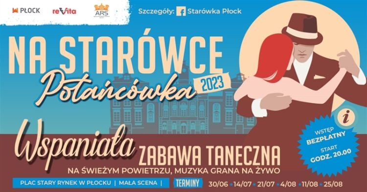 Fundacja Revita przy wsparciu Agencji Rewitalizacji Starówki ARS Sp. z o.o. zaprasza płocczan na kolejny już sezon tanecznych spotkań pn.: „Na Starówce Potańcówka”, które jak zawsze odbywają się w sercu płockiego Starego Miasta – na Placu Starego Rynku.