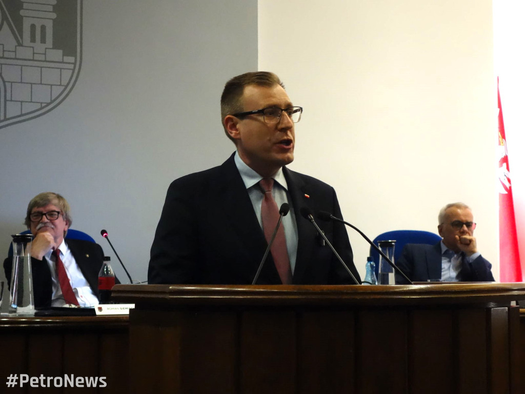 – Tęsknię do czasów, kiedy ta aula była miejscem dyskusji na temat ścieżek rowerowych, stadionów, inwestycji w mieście, a nie non stop rozmawiamy o Unii Europejskiej, o Tusku, o Merkel. Polityka zagraniczna nie leży w rękach samorządu – stwierdził. Podkreślał, że przedstawiciele PiS uprawiają hipokryzję i demagogię, choć on sam jest przeciwny powstaniu CIC w Płocku.