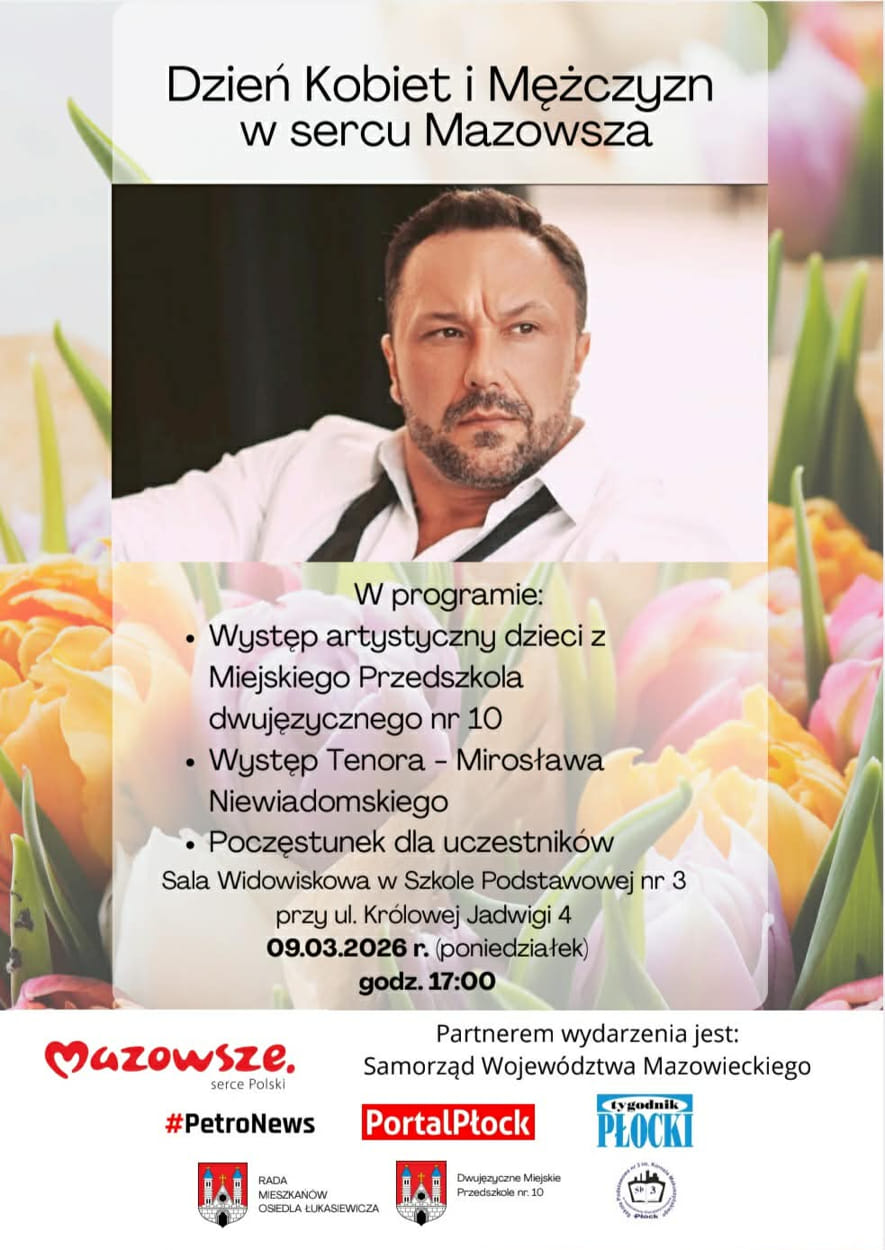 Wkrótce w Płocku odbędzie się koncert „Dzień Kobiet i Mężczyzn w Sercu Mazowsza”. Wystąpi tenor Mirosław Niewiadomski. Pojawią się także dzieci z programem artystycznym.