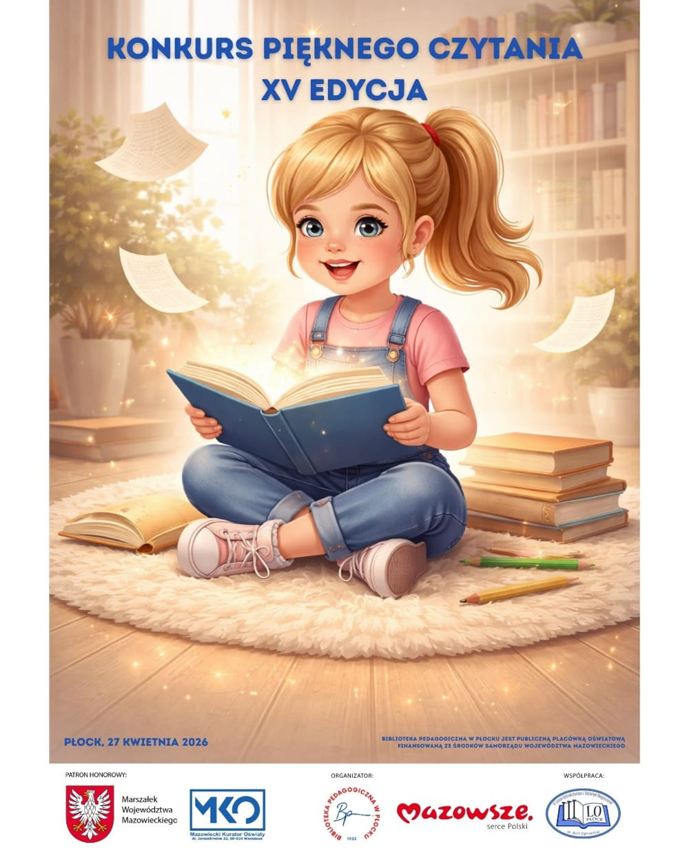 Biblioteka Pedagogiczna w Płocku zaprasza do udziału w XV edycji Konkursu Pięknego Czytania. Celem wydarzenia jest promocja czytelnictwa, rozwijanie zainteresowania wartościową literaturą dziecięcą oraz doskonalenie umiejętności pięknego, wyrazistego czytania.