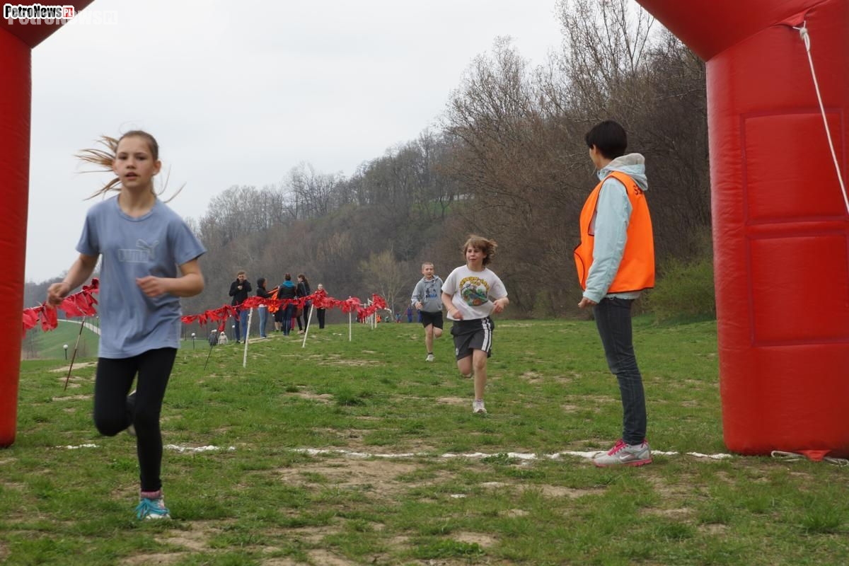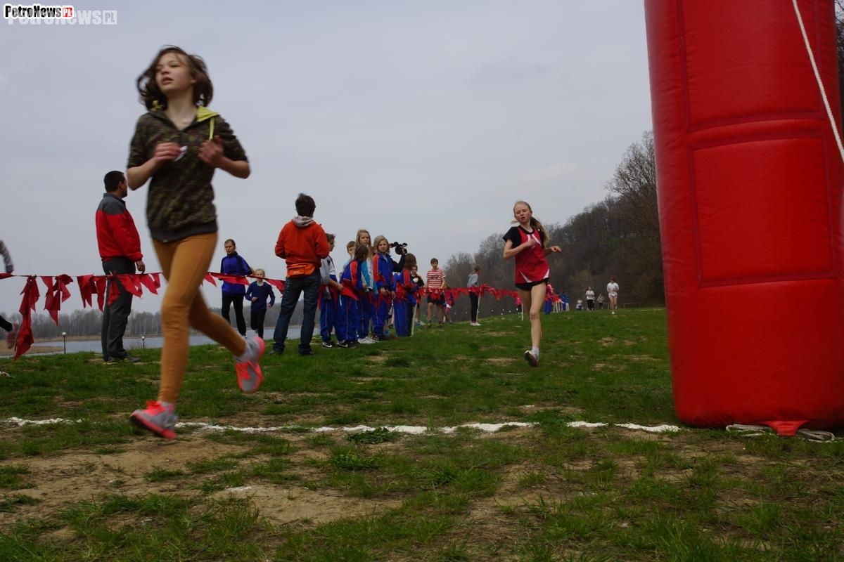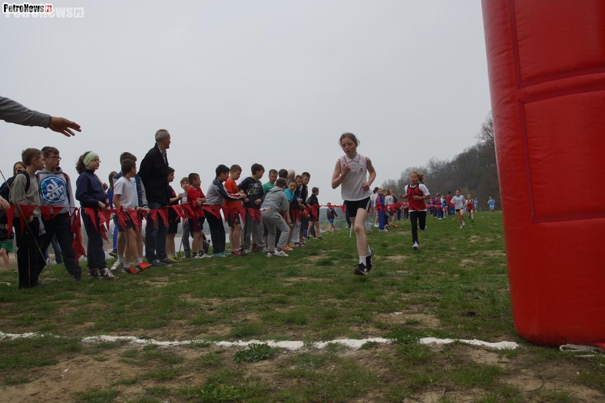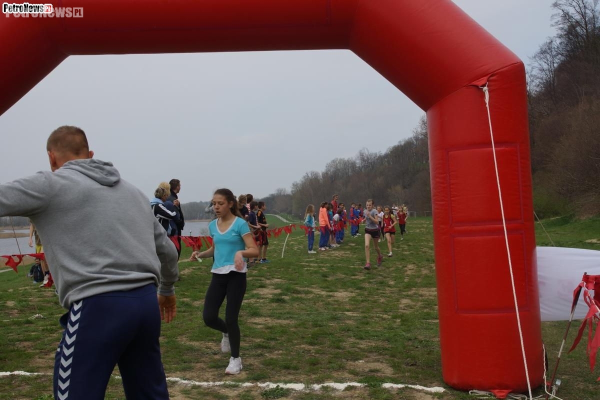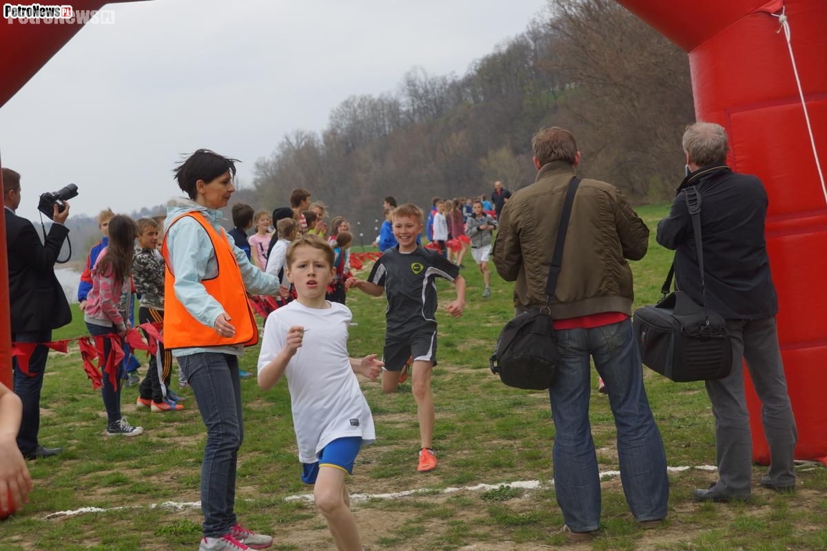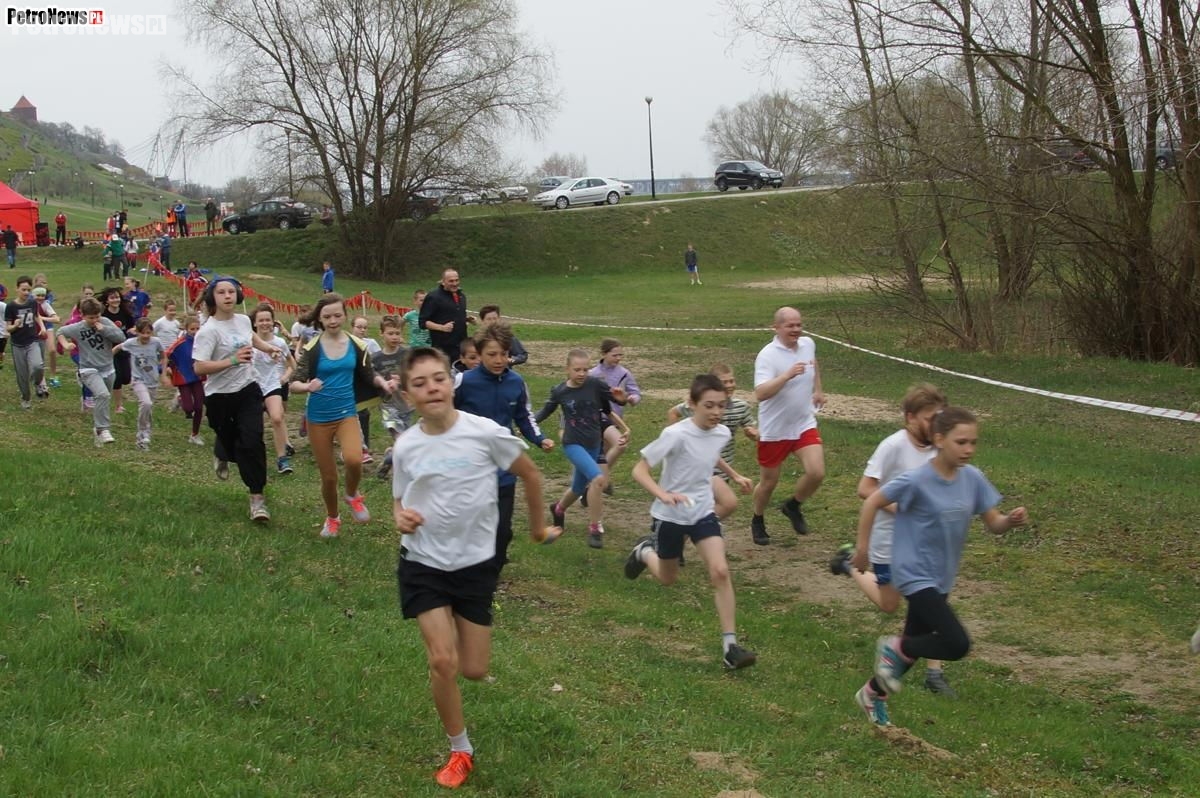 Już po drodze spotkaliśmy grupy uczniów, którzy małymi plamkami schodzili ze wszystkich stron skarpy, by w miejscu rejestracji stworzyć wielobarwne skupisko i znów rozprzestrzenić się, tym razem na zboczu skarpy, gdzie czekali na rozpoczęcie biegu. Dołączyliśmy do drużyny ze Szkoły Podstawowej nr 7. – O matko, takie duże kółko będziemy biec? – przeraził się jeden z młodszych uczestników. – Biegamy tu od początku istnienia konkursu – tłumaczyła opiekunka grupy. – Czwartoklasiści są pierwszy raz, ale już piąta i szósta klasa brała udział w poprzednich edycjach. To klasa sportowa, charty na bieganie – śmiała się.