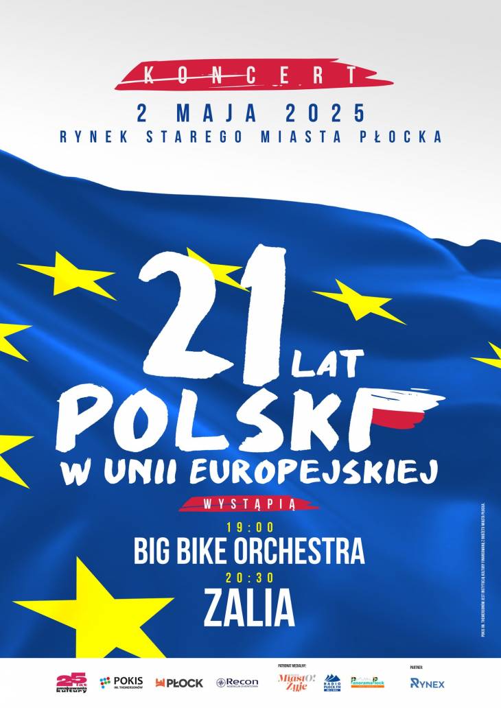 W piątek, 2 maja, na Starym Rynku odbędzie się także koncert z okazji przyjęcia Polski do Unii Europejskiej. O godz. 19 wystąpi zespół Big Bike Orchestra, a o godz. 20.30 Zalia. Wstęp wolny.
