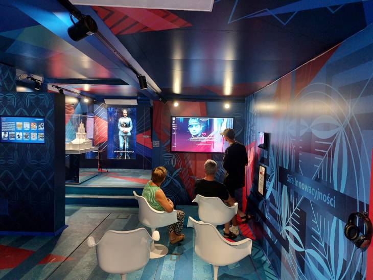 Wirtualny Teatr Historii, umieszczony został w specjalnym, rozsuwanym samochodzie ciężarowym. Podzielono go na kilka stref odpowiadających poszczególnym latom odzyskiwania niepodległości i odbudowy Polski po 1918 r. Znajdziemy tu zarówno część poświęconą symbolom narodowym, poznamy najważniejsze wydarzenia i osiągnięcia Polaków z lat 1918 – 1921, zobaczymy artefakty ojców niepodległości i pamiątki po Legionach Polskich zeskanowane w 3D i prezentowane jako hologramy. Poszukiwaczy dowodów na kreatywność i innowacyjność Polaków zainteresuje makieta polskiego pawilonu, który zbudowano na Międzynarodowej Wystawie Sztuki Dekoracyjnej i Wzornictwa w Paryżu w 1925 roku. To wtedy we Francji pokazaliśmy całemu światu, że z wraz niepodległą Polską odrodziła się nasza kultura i sztuka, czego dowodem było aż 205 nagród przyznanych polskiej sekcji. Gości żegna naturalnej wielkości hologram Marszałka Piłsudskiego.