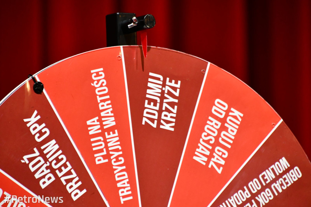 Jednym z bardziej widowiskowych momentów spotkania było „Koło Trzaskowskiego” – rekwizyt przygotowany przez byłego premiera, który miał zilustrować zmienność poglądów Rafała Trzaskowskiego. Morawiecki zaprosił na scenę kilku uczestników spotkania, którzy kręcili kołem, na którym widniały przeciwstawne hasła, takie jak „pochwal budowę muru na granicy z Białorusią” i „skrytykuj budowę muru”, „przyjmij uchodźców”, „zdejmij krzyże” czy „pochwal Jana Pawła II”.