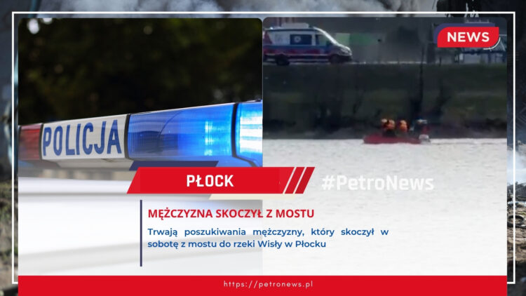 – Po godz. 15 dyżurny płockiej jednostki otrzymał zgłoszenie, z którego wynika, że ktoś skoczył z mostu, po czym zniknął pod powierzchnią wody. Zgłoszenie wpłynęło od świadka zdarzenia. Na Wiśle trwają poszukiwania – przekazała podkom. Monika Jakubowska, oficer prasowa płockiej policji.