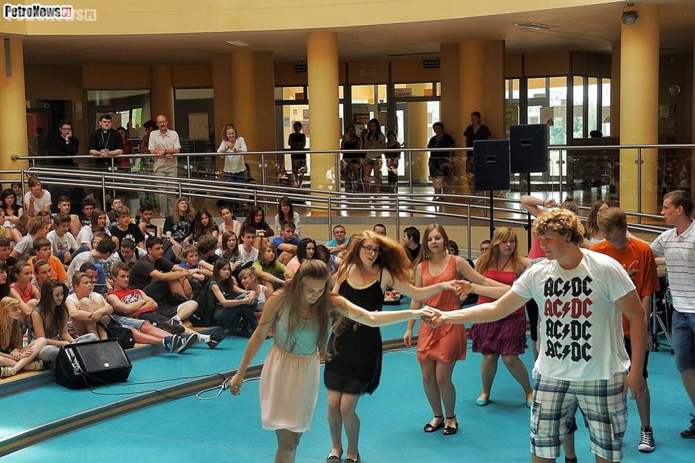 Już przy wejściu miło zaskoczyła nas scenografia i frekwencja wśród uczniów. Oceny już wystawione, spodziewaliśmy się więc garstki osób, które z poczucia obowiązku są jeszcze w murach szkolnych. Jednak aula ZS 5, w skład którego wchodzi Gimnazjum nr 8 oraz VII Liceum Ogólnokształcące, była pełna. Kolorowa scenografia, kolorowi uczniowie, profesjonalny sprzęt nagłośnieniowy (obsługiwany również przez ucznia) – to wszystko sprawiało naprawdę fajne wrażenie.