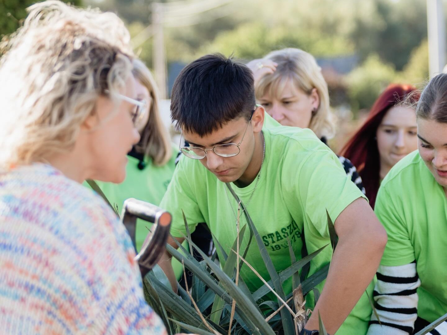 Grupa uczniów, pod opieką dyrekcji i nauczycieli, pojawiła się w Łaziskach, by włączyć się w prace porządkowe. Pomagali przy przygotowaniu posesji, wynoszeniu elementów starego wyposażenia i sprzątaniu terenu wokół domu.