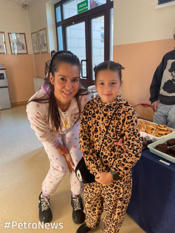– Proszę zobaczyć, poprzebierały się w różne pidżamy, kombinezony, stroje, nawet jednorożca, panterki, w kapturki różne, misie, konie, przeróżne postaci. Jest to dla nich frajda, szczególnie dla młodszych klas, ale ja widzę, że w starszych klasach też się dzieci poprzebierały, poprzebierali się nawet nauczyciele – wyjaśnia dyrektor Edyta Wróbel.
