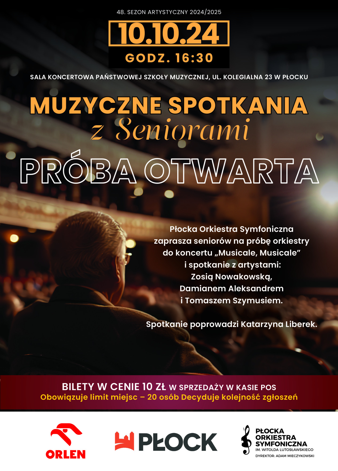 Seniorzy będą mieli okazję poznać bliżej artystów piątkowego koncertu Płockiej Orkiestry Symfonicznej: