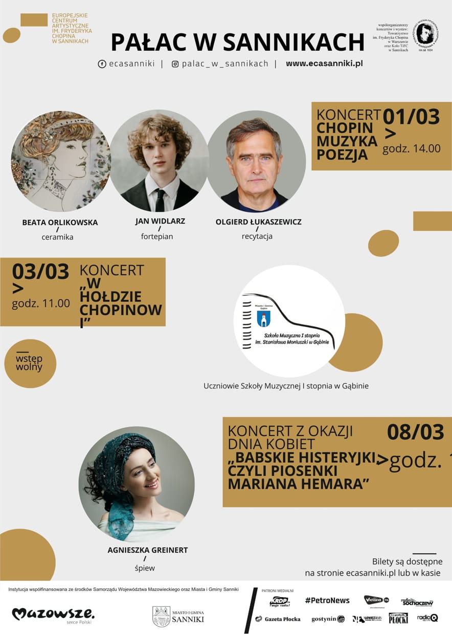 Europejskie Centrum Artystyczne im. Fryderyka Chopina w Sannikach zaprasza na kolejny koncert Chopin – Muzyka – Poezja. To wyjątkowe wydarzenie odbędzie się 1 marca 2026 r. o godz. 14.00.
