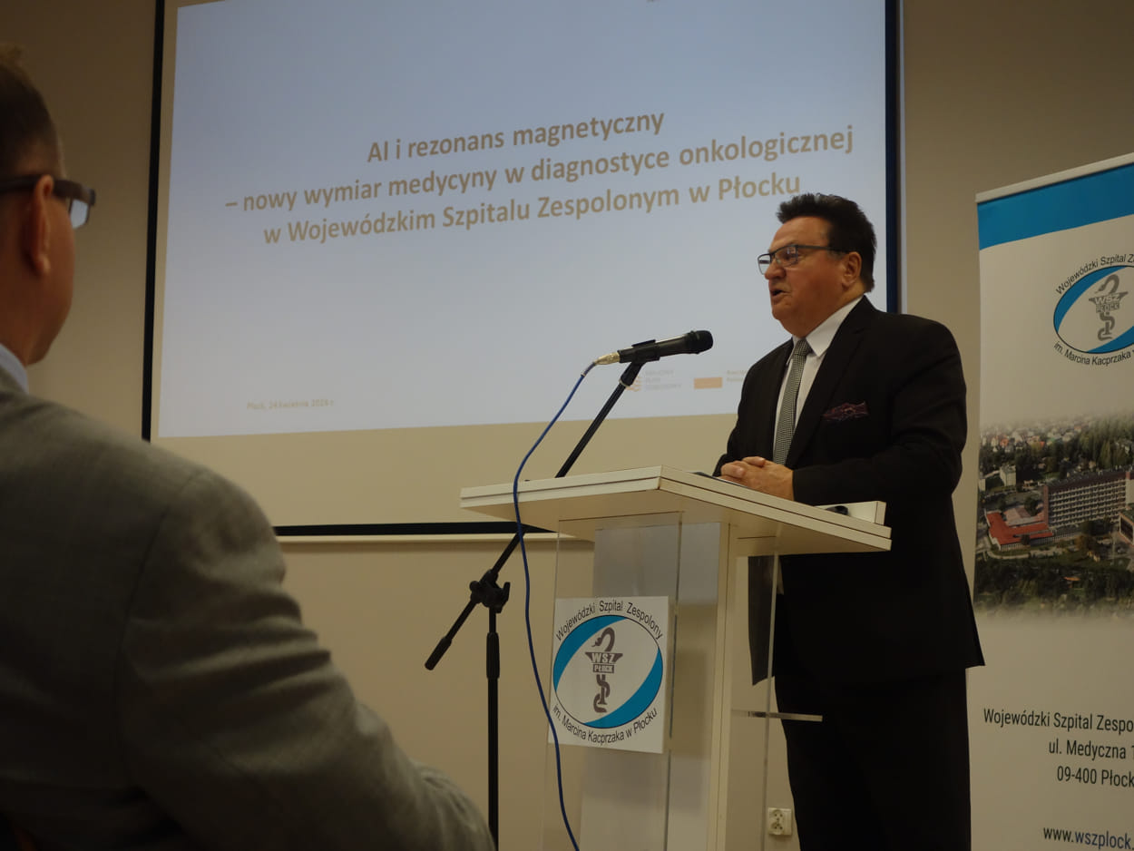 – Innowacyjne technologie realnie zmieniają sposób diagnozowania i leczenia pacjentów. W Wojewódzkim Szpitalu Zespolonym w Płocku nowoczesny rezonans magnetyczny będzie wykorzystywany do precyzyjnego planowania radioterapii, w czym pomóc ma sztuczna inteligencja. Oznacza to między innymi szybszą i bardziej precyzyjną diagnostykę, wiąże się jednak także z nowymi wyzwaniami, m.in. koniecznością właściwego nadzoru medycznego i pytaniami o odpowiedzialność – podkreślił Adam Struzik, Marszałek Województwa Mazowieckiego.