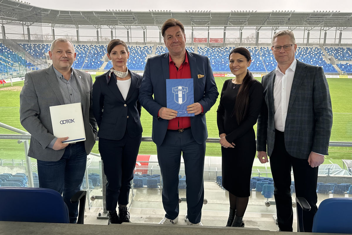 ELKOP SE to potentat w branży nieruchomości komercyjnych. Działa w całej Polsce, a zajmuje się zakupem nieruchomości, które następnie wynajmuje na potrzeby biznesowe – produkcyjne, biurowe czy handlowe. W Płocku jest właścicielem chociażby budynku Cotex Office Centre. Podczas podpisania umowy obecni byli przedstawiciele Spółki ELKOP SE: Mariusz Patrowicz, Prezes Zarządu Jacek Koralewski oraz Wiceprezes Zarządu Anna Kajkowska.