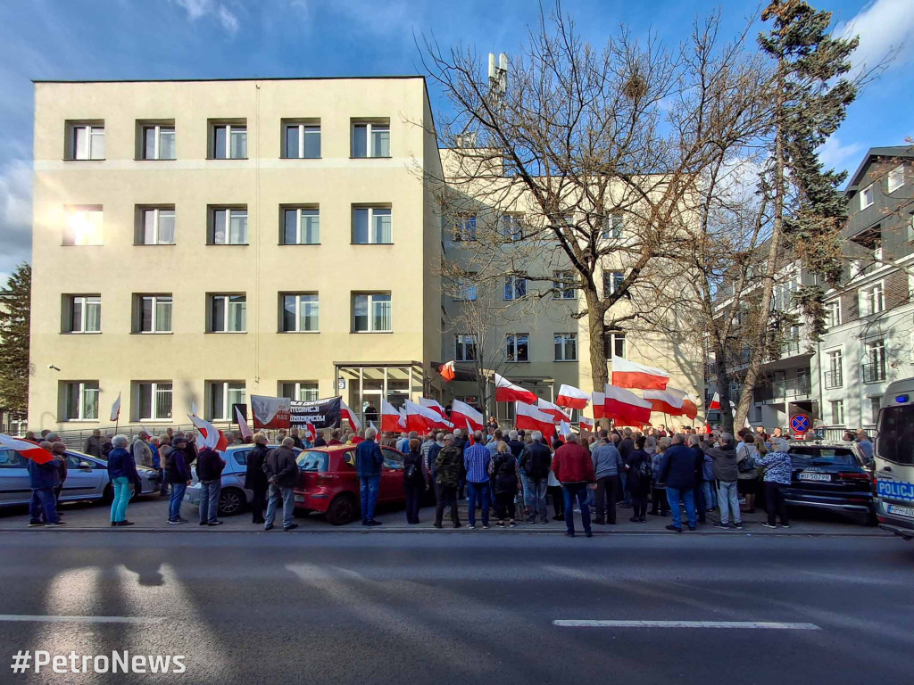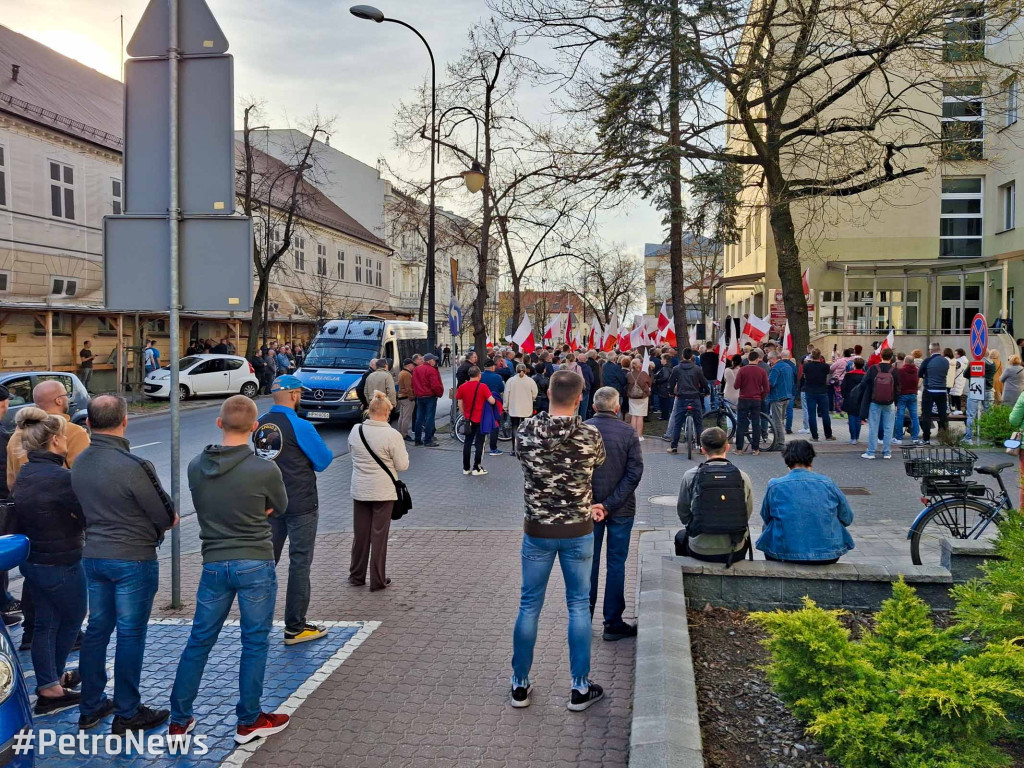 – Walczymy o nasze bezpieczeństwo, walczymy o przyszłość tego miasta, walczymy o to, aby nasze matki, żony, dzieci, wnuki mogły bezpiecznie poruszać się po Płocku i staramy się odsunąć od nas zagrożenie, jakie niesie ze sobą ten punkt i jakie niesie ze sobą zbliżający się do nas pakt migracyjny – mówił przed protestem płocki radny Szymon Stachowiak. Przed siedzibą Delegatury Urzędu Marszałkowskiego w Płocku zebrało się kilkaset osób.
