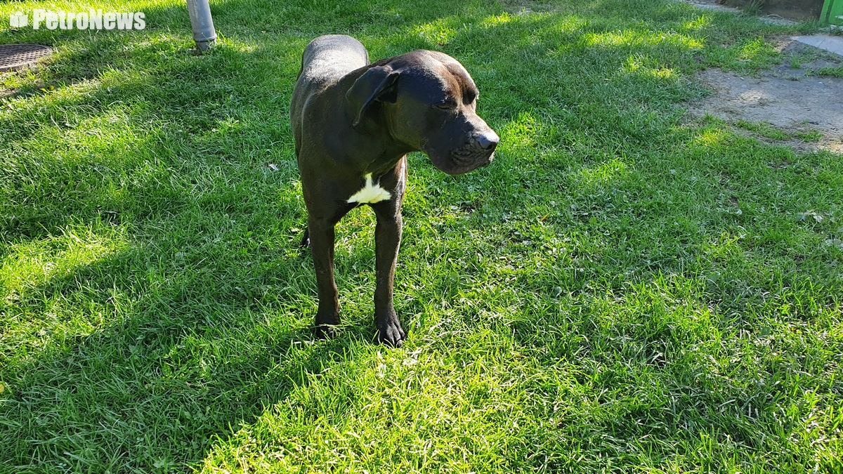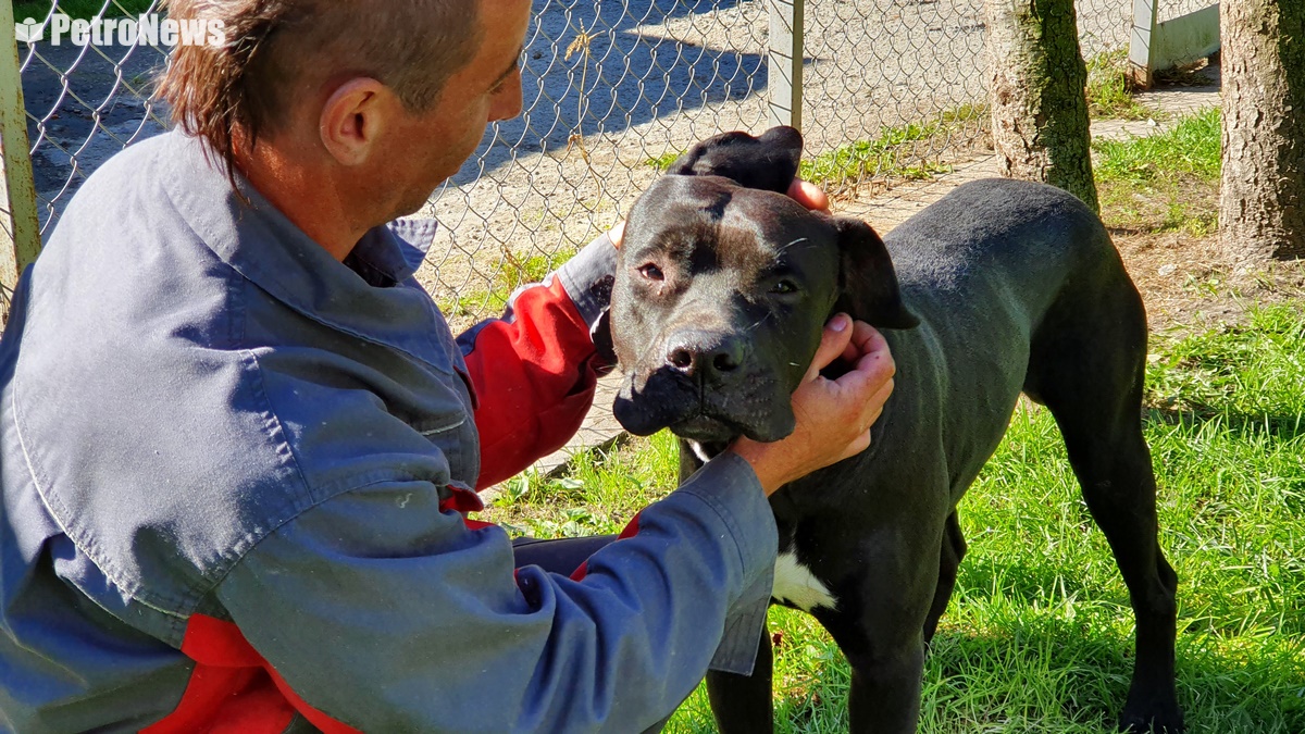 Śliniak (nr karty211/20) to około roczny pies, z lśniącą, czarną sierścią naznaczoną białym krawatem, w typie pitbulla.