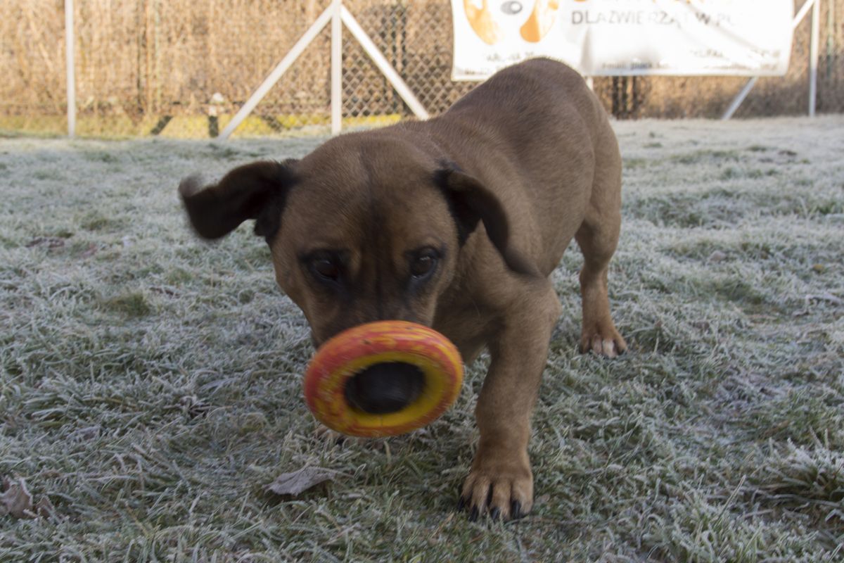 Maks jest mieszańcem z jamnikiem, uwielbia się bawić, co zaprezentował nam podczas sesji zdjęciowej. Na pewno będzie doskonałym towarzyszem zabaw, nie tylko dla dzieci!