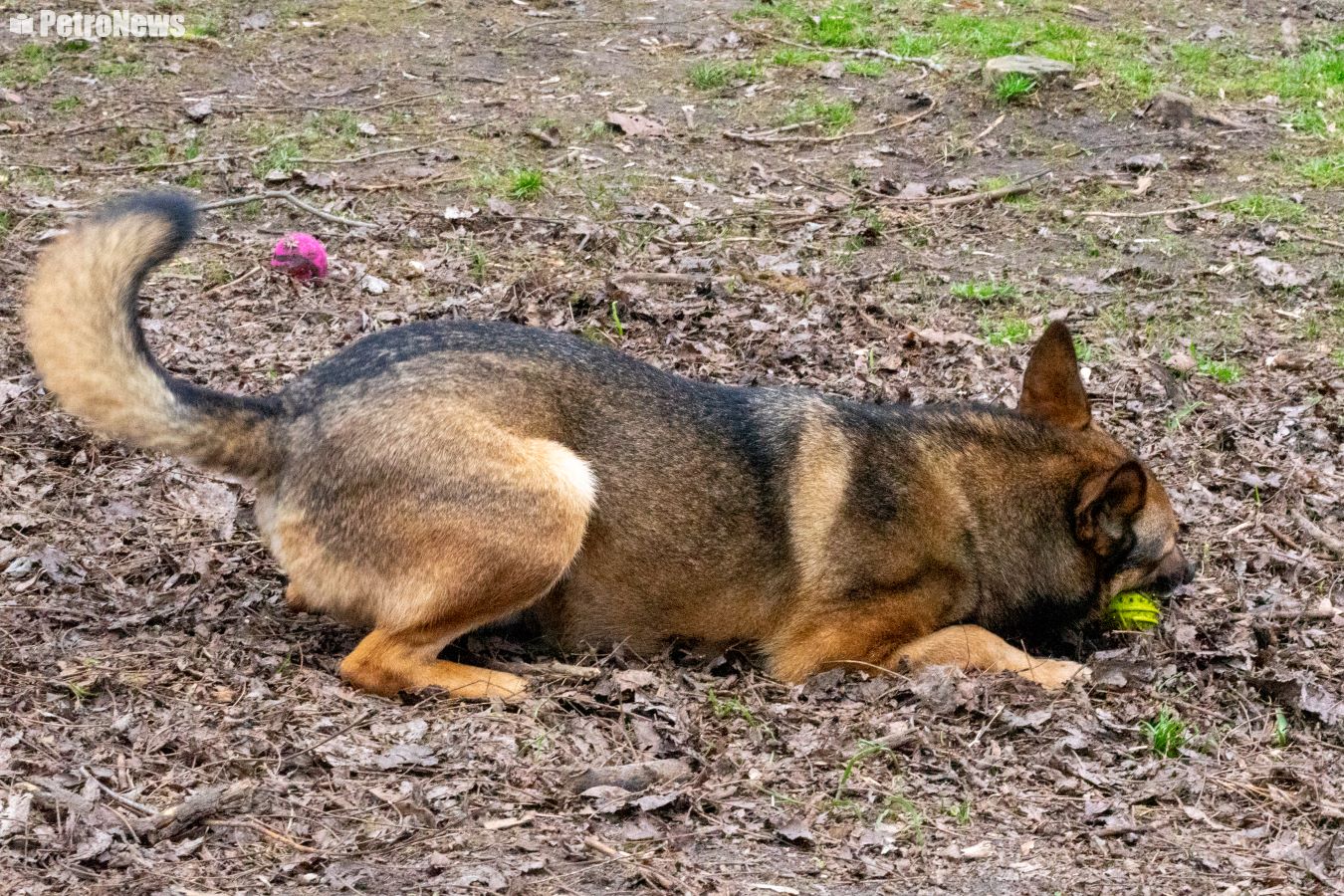 I faktycznie, mieliśmy okazję sprawdzić to naocznie. Dino grzecznie prosił o zabawkę, po czym biegł za nią daleko, na sam koniec placu wybiegowego, i przynosił ją w pyszczku do dalszej zabawy. To zdecydowanie pies, który potrzebuje ruchu, więc jeśli macie problem z motywacją do spacerów, Dino zapewni Wam sporą porcję ćwiczeń na świeżym powietrzu.