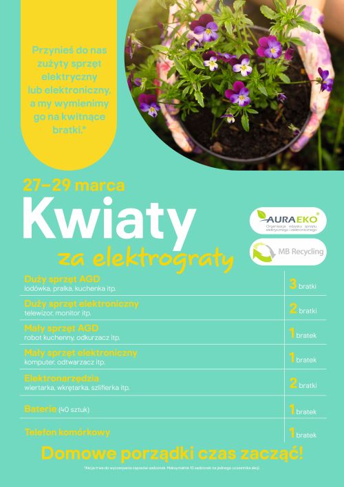 – Przynieście stare telefony, ładowarki, laptopy, suszarki, pralki i inne elektroodpady do naszego sklepu. Oddajcie je w wyznaczonym punkcie zbiórki. W zamian otrzymacie sadzonki bratków, które ozdobią Wasze balkony i ogrody! – zachęcają organizatorzy akcji.