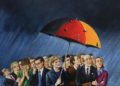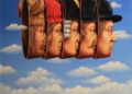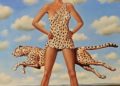 Jest jeszcze coś, co mnie szczególnie urzekło; artysta doskonale oddaje tę wciąż zaskakującą – nas facetów, umiejętność kobiet do „zaginania” dla własnych potrzeb praw fizyki przejawiającą się w ruchach, gestach, pozach, a nawet w stąpaniu po ziemi, jakby zupełnie nie dotyczyła ich grawitacja. Jednakże najistotniejszy w malarstwie Olbińskiego jest pomysł, koncept, swoboda konstruowania plastycznego żartu, operowania skojarzeniami, przypisywania codziennym przedmiotom nowych kontekstów. To wszystko buduje aurę lekkości i wciąga widza w intelektualną zabawę – Król Lear z plakatu dobrze wie, jak krucha jest jego władza, bo drewniana korona może za chwilę wybić mu oczy, a ślepy Amerykanin nie zważa, co depcze swymi stopami, implementując gdzie popadnie, swój model demokracji. Oczywiście takich ukrytych zagadek, szarad jest dużo więcej, a sama wystawa jest niekwestionowaną ucztą dla naszego oka i umysłu.
