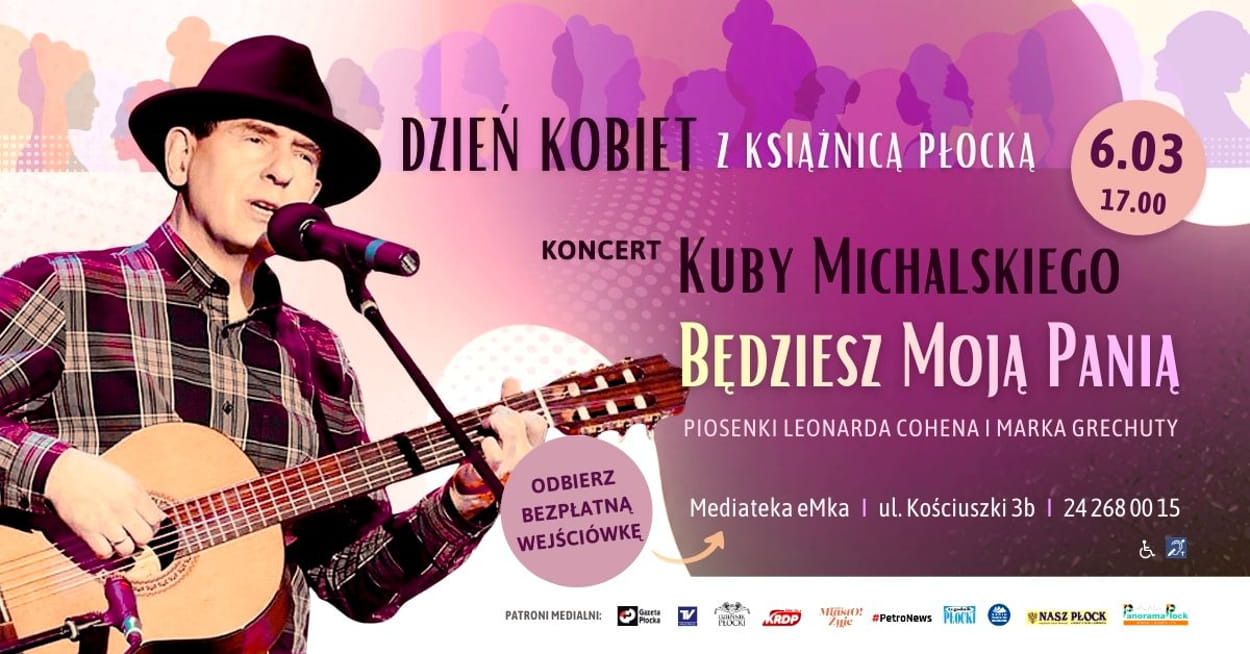 Książnica Płocka zaprasza 6 marca o godz. 17.00 na koncert Kuby Michalskiego „Będziesz moją panią”. W programie piosenki Leonarda Cohena, Marka Grechuty oraz kompozycje Kuby Michalskiego do wierszy wielkich polskich poetów.