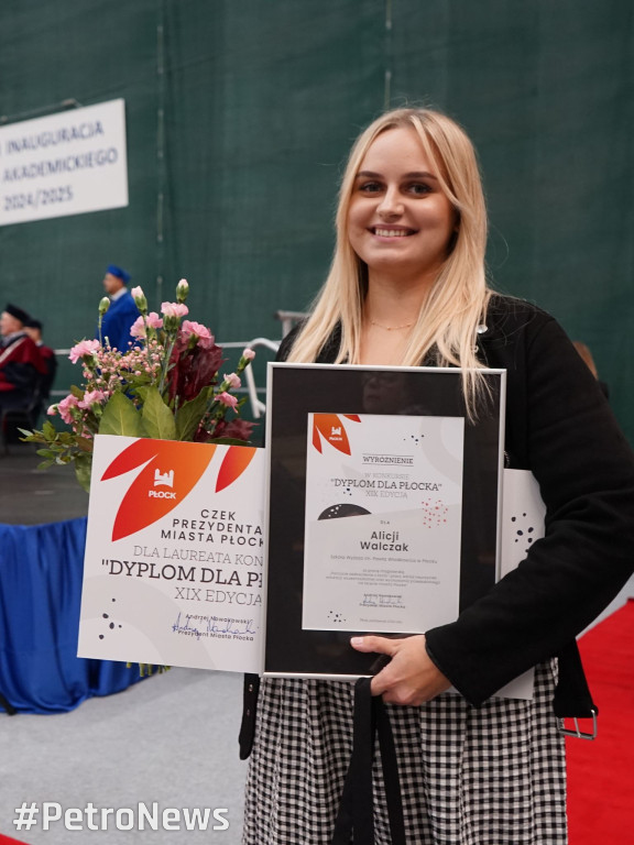 W trakcie inauguracji wręczono także wyróżnienie w konkursie „Dyplom dla Płocka„. Zdobyła je mgr Alicja Walczak za pracę „Poczucie zadowolenia z życia i pracy wśród nauczycieli edukacji wczesnoszkolnej oraz wychowania przedszkolnego na terenie miasta Płocka”. Praca została przygotowana pod kierunkiem prof. SWPW dr hab. Małgorzaty Kamińskiej (kierunek: pedagogika przedszkolna i wczesnoszkolna).