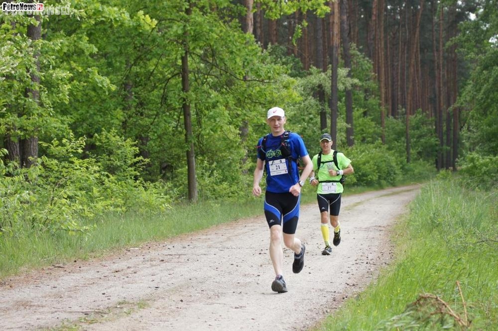 Po krótkiej instrukcji, ostrzeżeniu przed dzikami i głośnym wystrzale z prawdziwej, starej broni, zawodnicy ruszyli w 86-kilometrową trasę. Truchtem, umiarkowanie, z przeświadczeniem, że sił musi im starczyć aż do pierwszego punktu kontrolnego, który umiejscowiony został w Nowym Duninowie, czyli po 21 kilometrach. W pięknej scenerii lasów, żółtym szlakiem Pojezierza Gostynińskiego, zawodnicy biegli pojedynczo lub małymi grupkami, z towarzyszeniem – od czasu do czasu – promieni słonecznych.