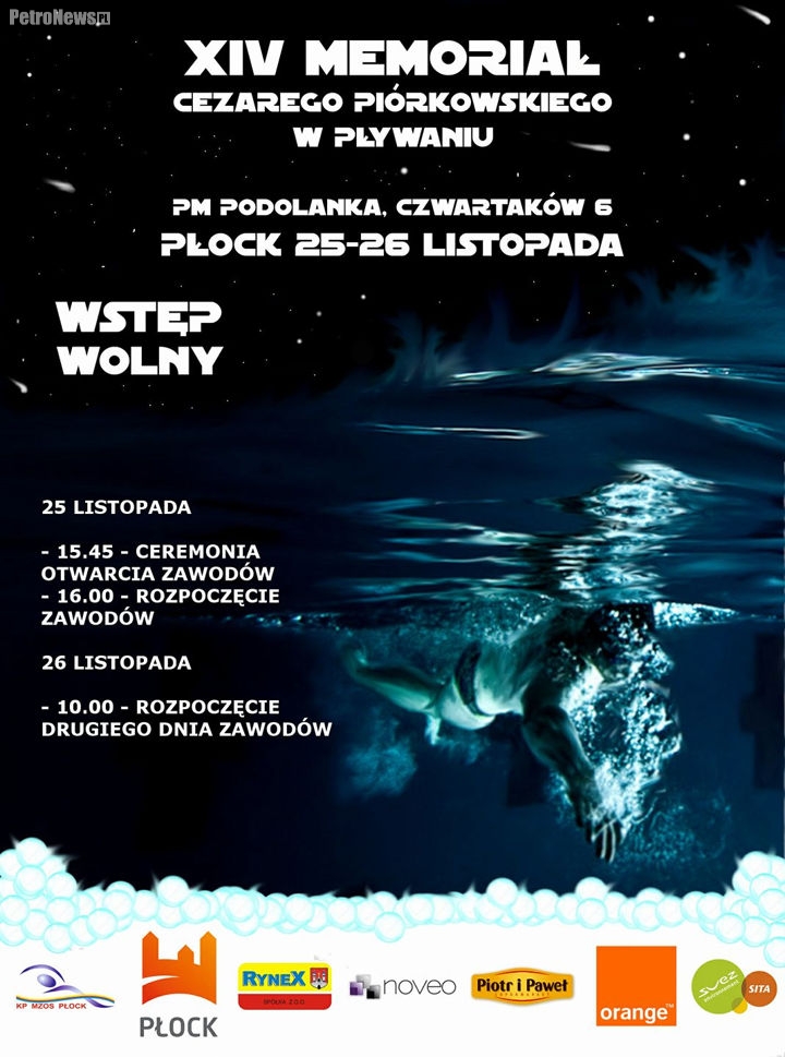 Zawody odbędą się w piątek i sobotę, 25 – 26 listopada, na Pływalni Miejskiej „Podolanka”, ul. Czwartaków 6 w Płocku. Uczestnicy wystartują w czterech grupach wiekowych. Dla zwycięzców przewidziane są liczne nagrody. Wstęp wolny.
