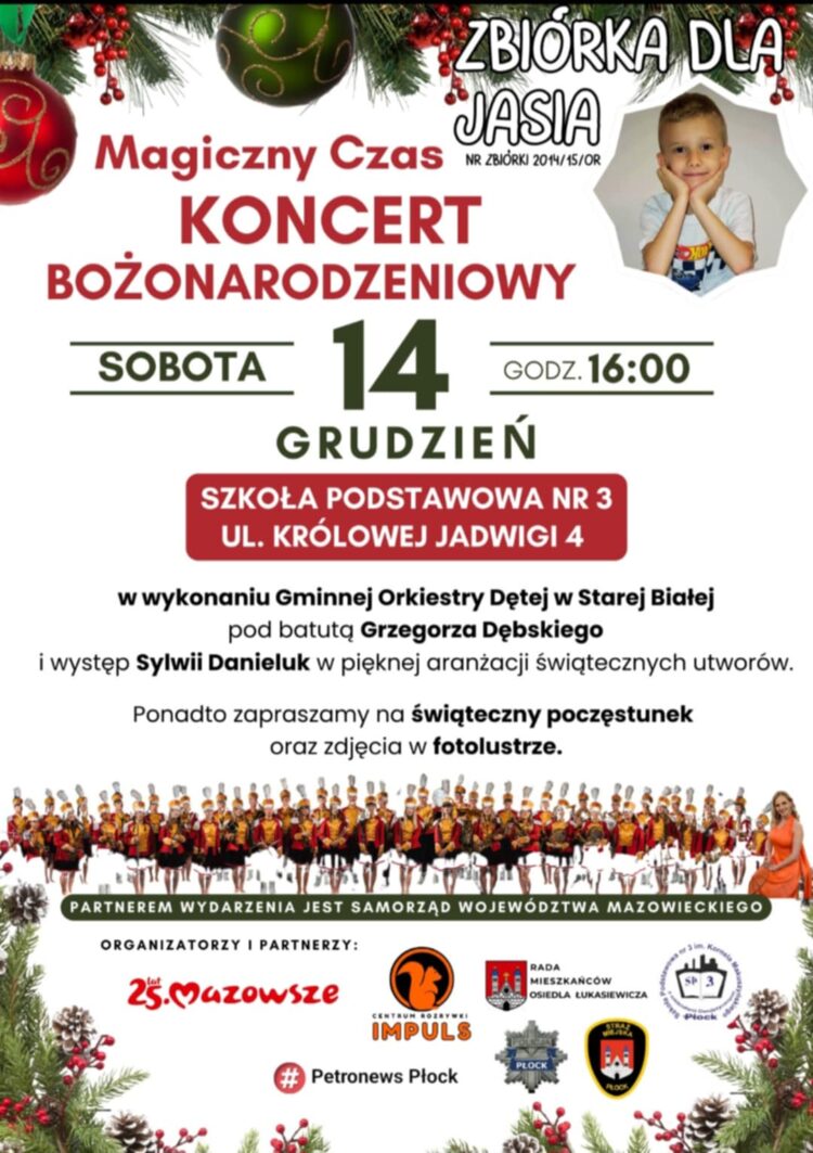 Koncert odbędzie się 14 grudnia o godz. 16.00 w Sali widowiskowej Szkoły Podstawowej nr 3 przy ul. Królowej Jadwigi 4 w Płocku.