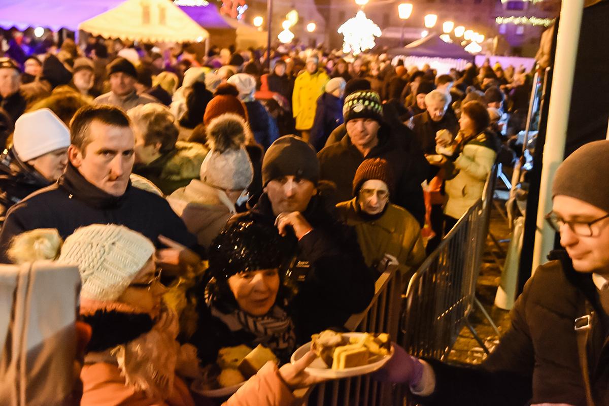 Jarmark Bożonarodzeniowy, świąteczne potrawy i kolędy, a także wspólne łamanie się opłatkiem, to atrakcje, które towarzyszyły tradycyjnej Wigilii przed Ratuszem.