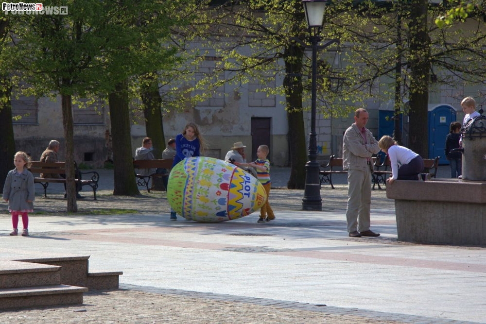 Ceremonia poświęcenia pokarmów ulżyła chyba wszystkim, i ludziom, i naturze. Ta również uznała, że musi zaznaczyć swą obecność w sobotni dzień pod ratuszem. Wielu z Państwa widziało na pewno gigantyczne wielkanocne jaja, które pozostały na Starym Rynku po Jarmarku Wielkanocnym. Przyozdobione, wielobarwne, puszyły się swą odmiennością i powszechnym zaskoczeniem przechodniów, czekając na Wielkanoc…