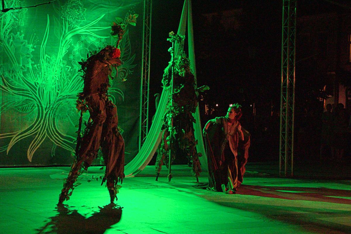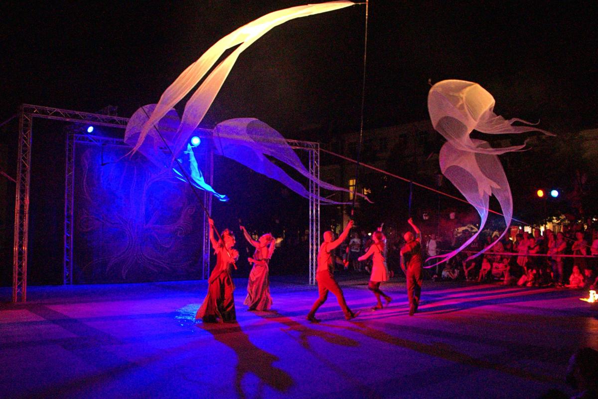 I wreszcie przyszła pora na teatr. Tu zaprezentował się zespół „Akt” z Warszawy swą sztuką „Ja gorę”. Obejrzeliśmy zadziwiający spektakl, czerpiący inspiracje ze źródeł poetyki ludowej związanej z tańcem i kultem żywiołów, w szczególności ognia, a także z występów cyrków objazdowych i ulicznych trup teatralnych.